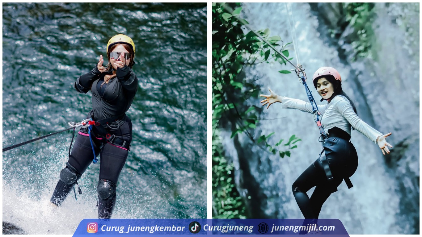 sensasi canyoning unik dan jarang ditemui. Aktivitas rappelling di Curug Kembar menjadi favorit
